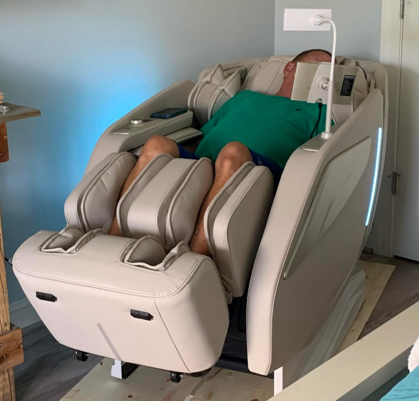 This zero gravity massage chair helps you relax in a natural weightless position while delivering full body massage for deeper relaxation at home.